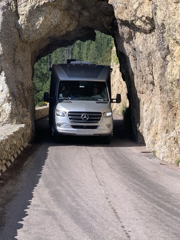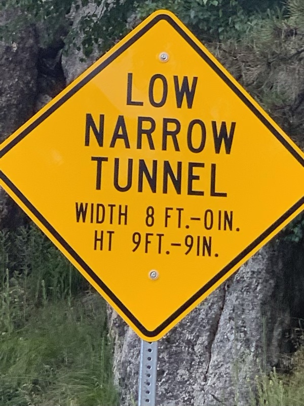 Surprisingly we have cell service on “The Wall” next to Badlands National Park. We spent two days in the Black Hills National Forest, first night at Sylvan Lake and another night at Horse-thief Lake.. On our way to Sylvan Lake we were confronted with this warning sign about the tunnel on our route.