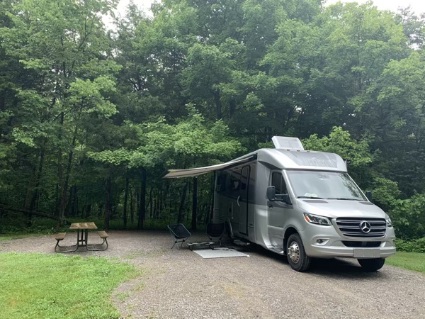 We did sleep well at our campground in southernmost Illinois, Ferne Clyffe. It is next to the Shawnee National forest. We haven’t seen much of the area due to a torrential downpour yesterday but we will do a short hike this morning before going off to Nashville.