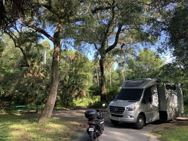 Badly leaking LP regulator replaced (fortunately we didn’t have a fire or explosion the last few days) and we departed RV service center slightly after 4pm and arrived at Skidaway Island State Park just before 8pm.