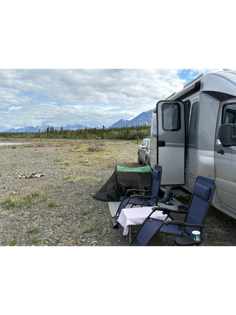 We are boondocking by the Kluane River – it has to be our best off grid spot in all our travels.