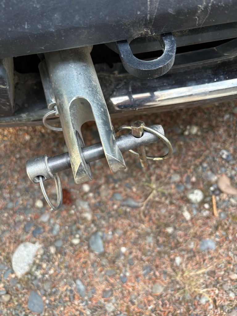 These are pictures without the tow bar for illustration purposes. I would like to believe that it came loose while using the pressure washer – the alternative (coming off during the drive) is f…..ing scary.