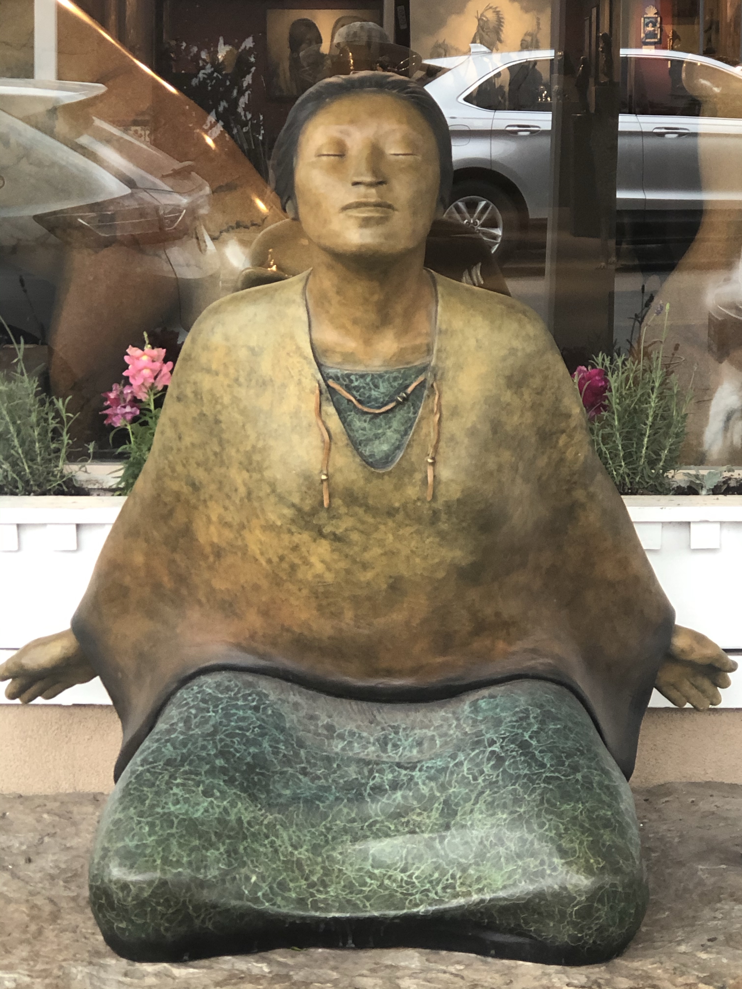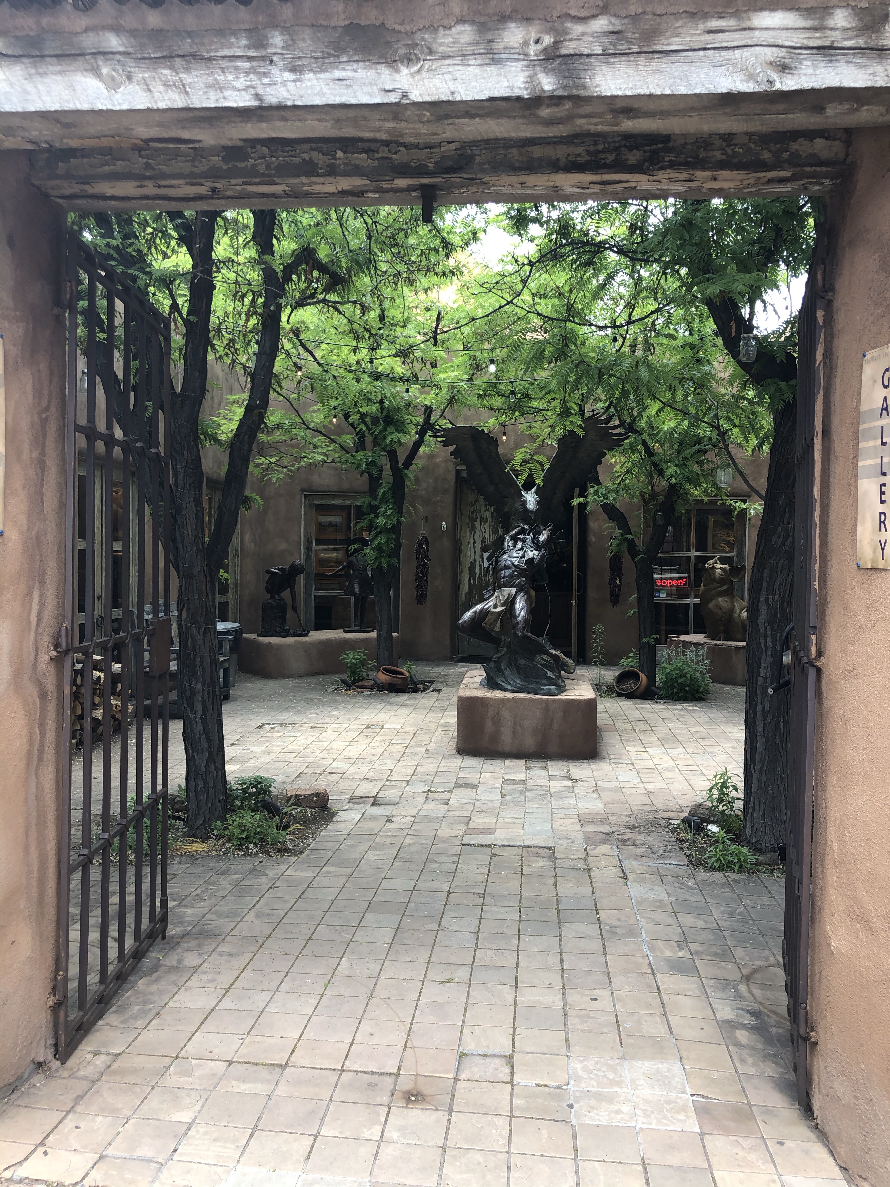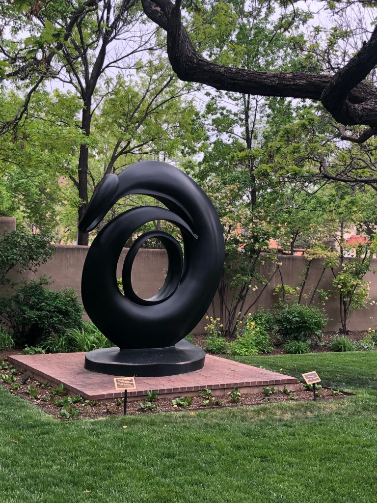 We therefore extended our stay in Santa Fe by two days, one of which was walking and riding around the town. It was incredibly sad to see so many shuttered businesses, just can’t imagine how they recover. Even the Georgia O’Keefe museum was closed but we did manage to sneak into the garden to take a few photos.
