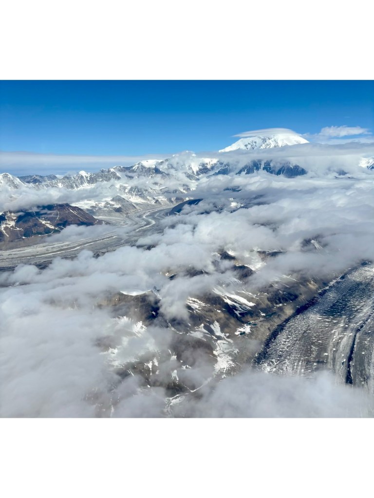A spontaneous decision to jump on the plane for a last minute opening on glacier landing flight. I tossed my credit card to the agent for Lynne to collect later and ran off to the plane. Before Pilot Riley could finish the question “who would like to ride up front?” my hand was up, more disapproving looks from my fellow passengers!