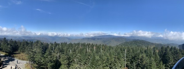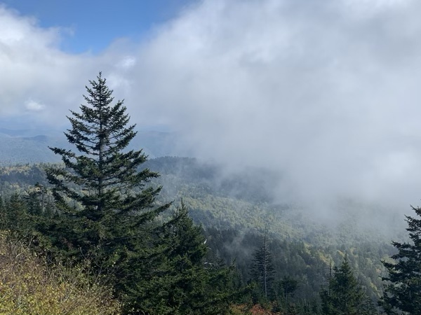 Undaunted by our stiff legs from yesterday we went off to hike Clingman’s Dome. The traffic was so bad we decided to abandon Greg’s van on the side of the road and walk the remaining 2 miles to the entrance and then up the very steep …… hill to the observation deck.