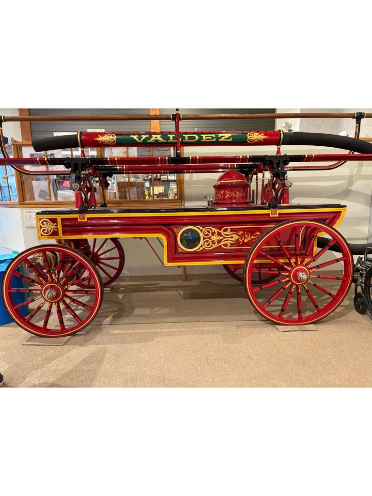 These two pieces of fire apparatus were beautifully restored. The Ahrens Steamer was not suited to AK conditions and was only used once!