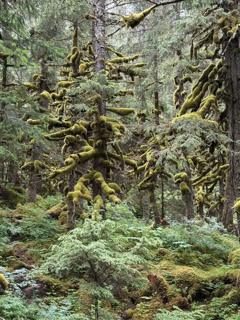 We wound our way up a rough road in the Trailblazer and when the road ended I walked up a path to take a picture of Valdez from an elevated viewpoint,leaving Lynne in a locked car. As I approached the crest there was aloud rustle in the bushes next to me but I couldn’t see anything. The next thing was the car alarm going off! Lynne had seen a bear looking at me curiously with a cocked head and had opened the door to warn me!